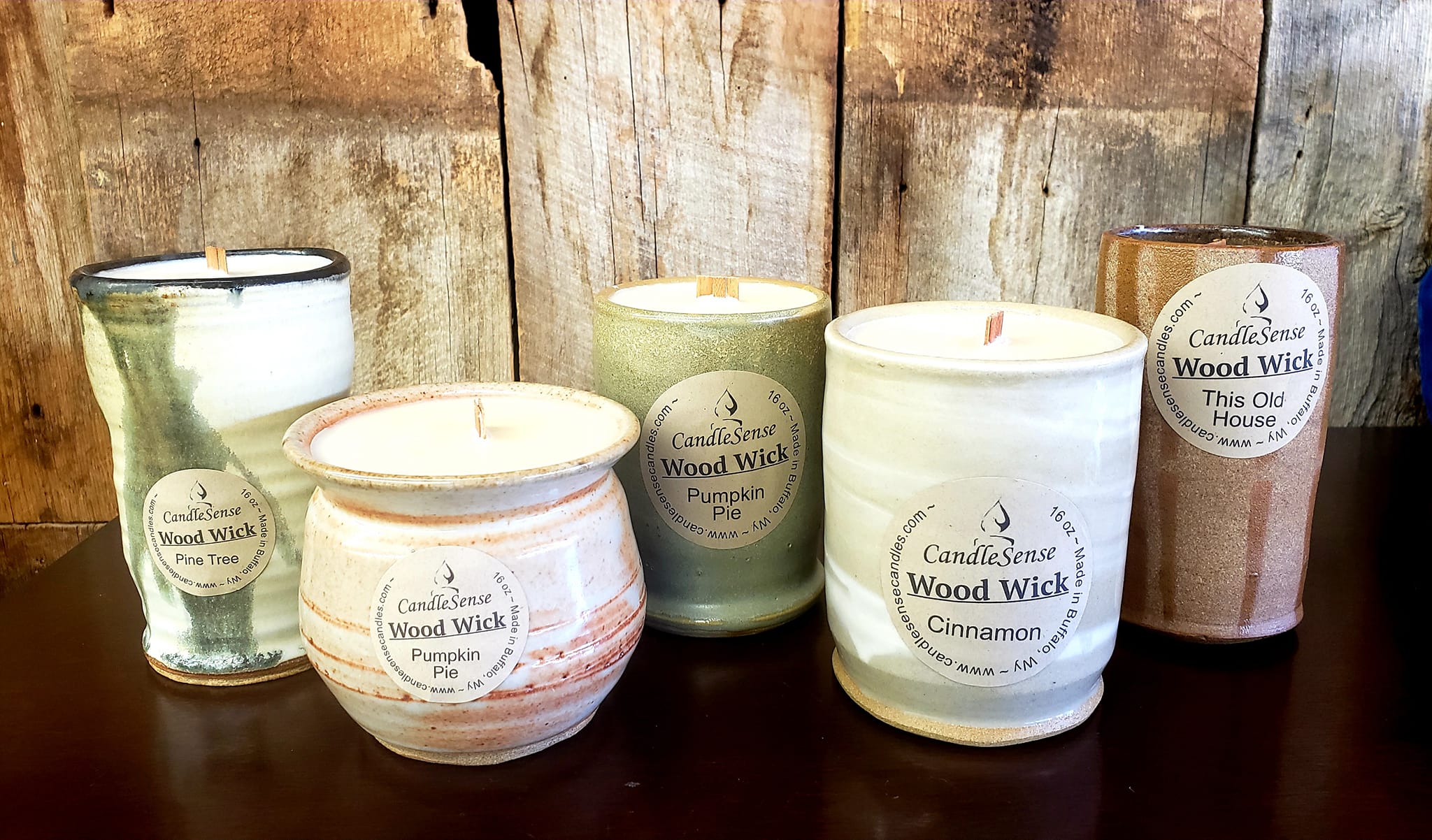 Check Out Our Premium Wood Wick Candles. They Come In Handmade Pottery and Contain 60% More Fragrance Making Our Already Fragrant Candles Even Better.