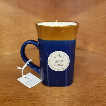 16oz Coffee scented candle in a coffee mug you can use when the candle is expended (lxd 5in x 3 1/2in).
