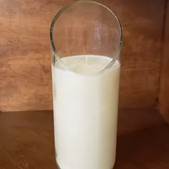 Lavender & Vanilla Candle in a Cut Wine Bottle (lxd 8in x 3in).