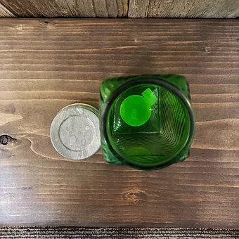 This is a unique 24oz Antique green glass mason type jar. This is a stunning candle container that will add so much character to your home! Deminsions: (lxd) 7in x 2.5in