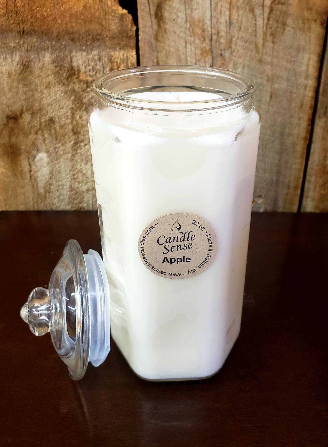 Apple Candle in a Lovely Glass Container (lxd 9in x 4in).