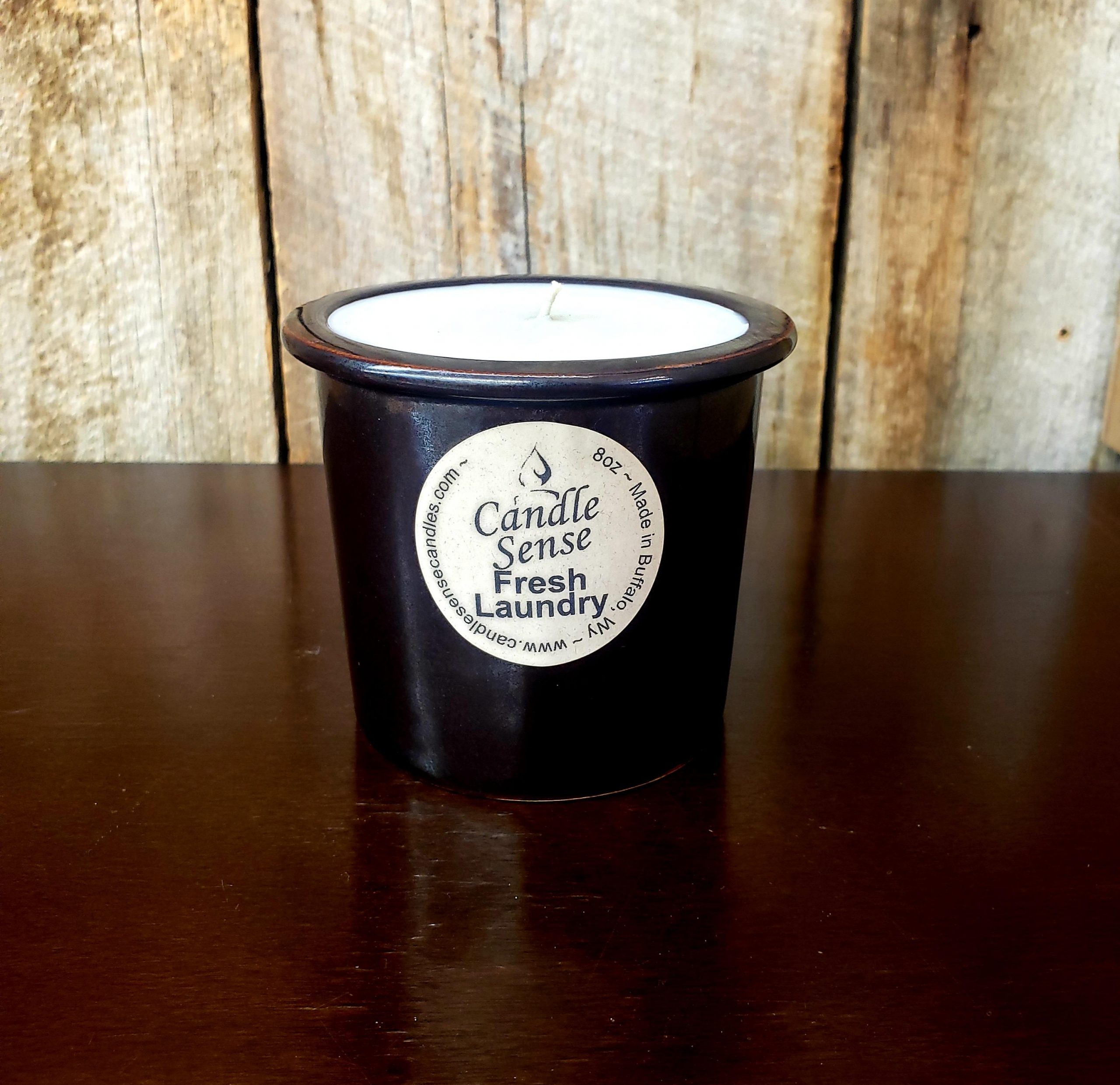 8oz Black Design Pottery Candle With Fresh Laundry Scent